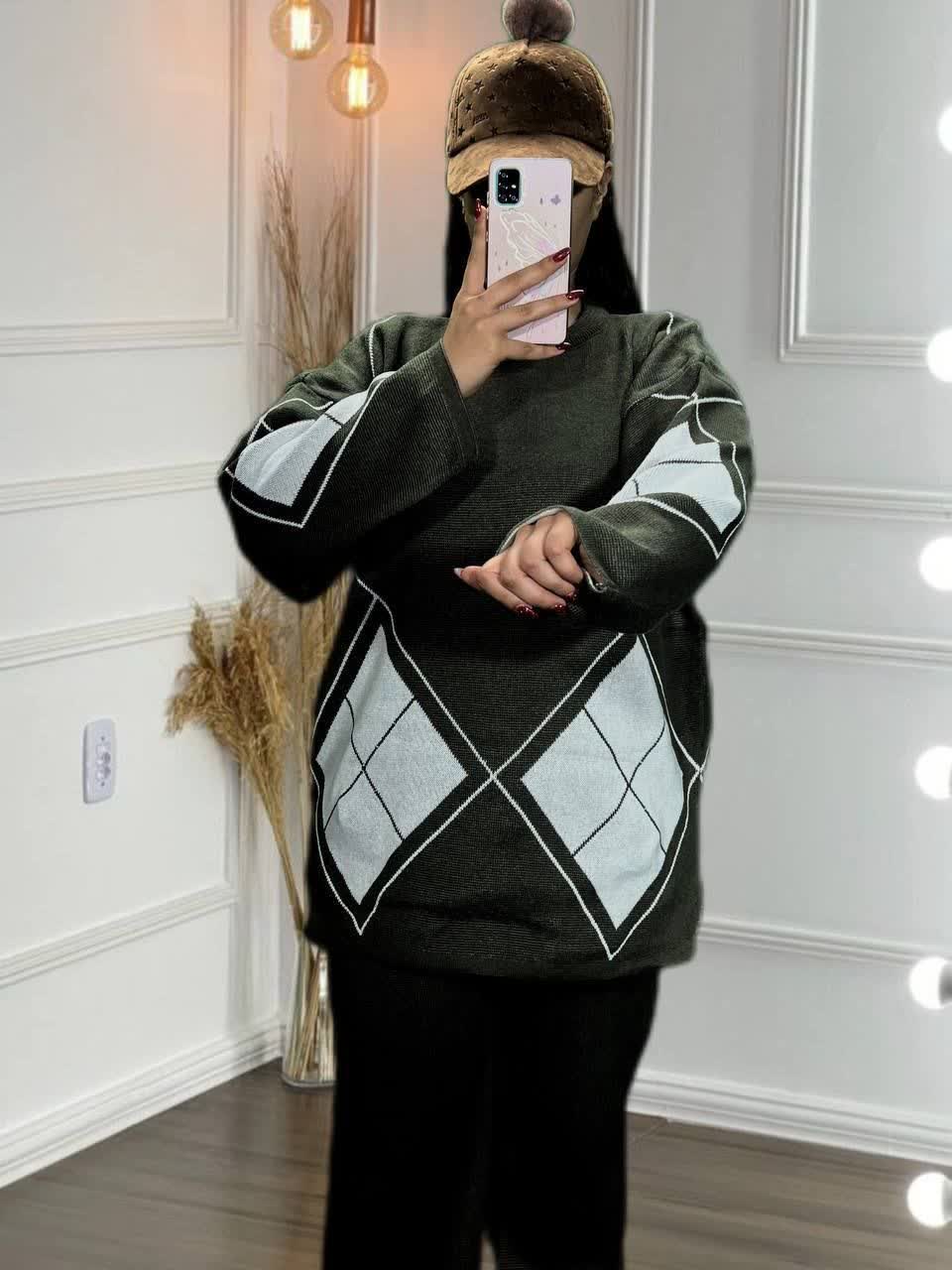 ناموجودست بلوز شلوار زنانه بافت طرح لوزی
